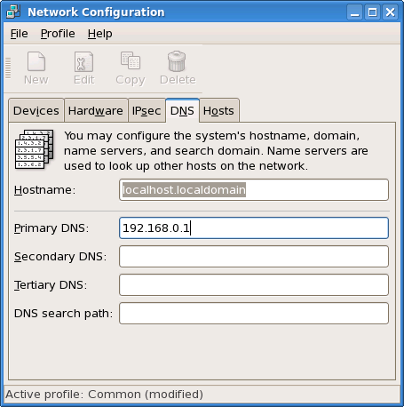 Use the GUI to access Administration -> Network. You will be prompted for the root password. After entering the password you should see a screen similar to the following: